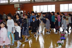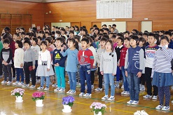 児童よりお礼の言葉と花束贈呈がありました。全校生で見送りをし、別れを惜しみました。