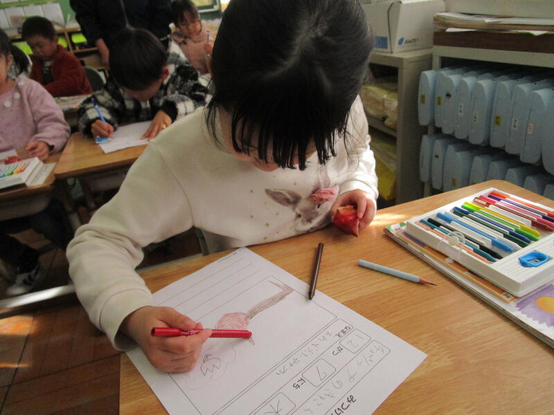 2年生は今、国語で学習で「わたしはおねえさん」という教材で登場人物の発言や行動を自分と比較しながら読む力を高めています。