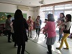 体がぽんぽん弾んでいます。 英語の先生ケイティ先生と鬼ごっこ