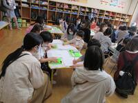 原っぱでは先生と一緒に小さい虫を探しています。どんな虫がいるかな?