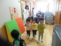 4月は、1回目年長組さん、2回目に年少組さんが避難しました。