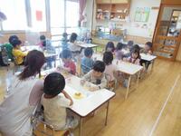 お誕生会の日は、特別メニューのケーキを食べました。