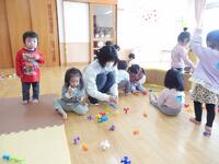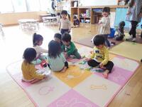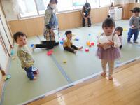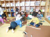 10名の新しいお友だちが入所した2歳児さん。新しいお友だちも少しずつ泣く時間が短くなり、興味のある玩具で遊び出せるようになってきました。