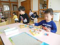 友達と同じ場で、線路をつないだり、ブロックを組み合わせたりと、自分で作って遊ぶことを楽しんでいます。