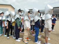 第一避難所まで避難し、クラスごとに並んで全員の無事を確認するまで約2分10秒でした。