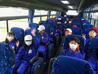 6月14日 5年生、いよいよ出発です。あいにくの雨ですが、子どもたちの気合いはバッチリ