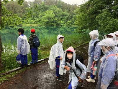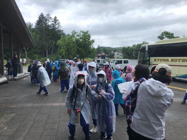 6月16日 裏磐梯に到着です。少し雨は降っていますが、カッパを着て準備完了。
