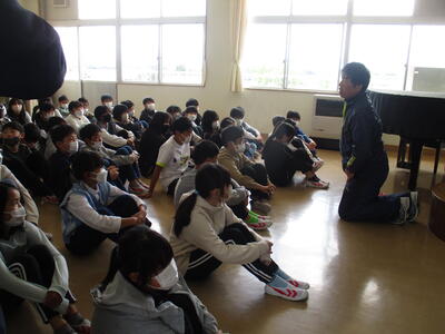 5月2日 6年生は、学年で運動会を振り返りました。先生は、6年生が主体的に運動会に取り組んでいたことや、自分の役割に責任をもってがんばっていたことなど、たくさんの成長を伝えていました。