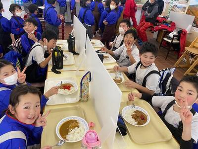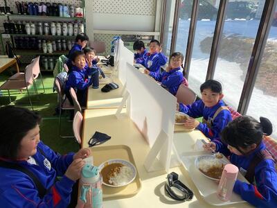 2月28日 たっぷり滑った後は……、そう、お昼ごごはんです。今日のメニューはカレーライス。