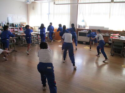 学習発表会に向けて、ちびっこ忍者たちが踊りの修行中。みんなの動きが揃うよう、休み時間もがんばっていました。2年生からは「上手になりたい。いい発表を見てほしい。」というひたむきな思いが伝わってきました。