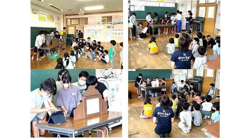 グループごとに、自分達の手作りの紙芝居を読み聞かせる6年生。