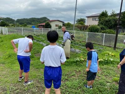 前歴代PTA会長・副会長会の会長である日下部さんが、学校畑の草刈りをしてくださいました。