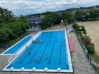 最高学年として、下級生のために、赤い台をプールの中に沈め、並べる作業もしてくれました。