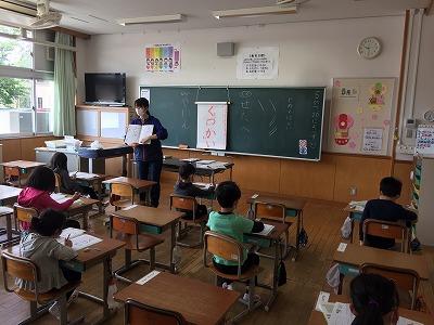 1年生は、小林司書から図書室の使い方の指導を受けました。