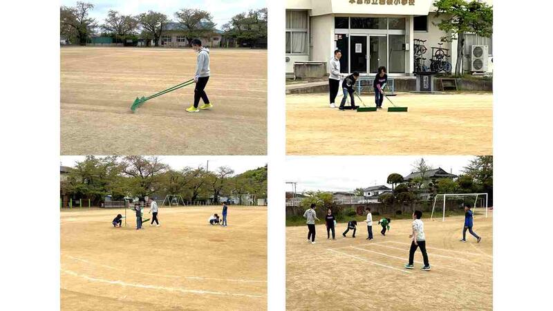 子ども達が気持ちよく走れるように、安全に練習できるようにと、体育担当の職員が校庭を整備してくれているのです。