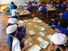 木工クラフトでは,木のパーツをボンドで貼り合わせて世界に一つだけの「くまさん」を作りました。中には,ペットのように愛着を持って接している児童もいました。オリジナリティあふれる「くまさん」,ぜひ見てみてください。