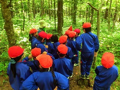 森林散策では,2時間にもわたって森の中を歩き回りました。湧き水の冷たさや澄んだ空気のおいしさを感じたようです。また,カエルの排卵や熊の爪痕なども見ることができました。スズメバチに出会った時の対処法も教わりました。自然について様々なことを体験して,学ぶことができました。