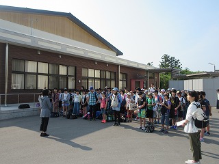 子どもたちはいつもより早く集合し、予定より少し早めに、元気に学校を出発しました。校長先生からは、「判断力」「チームワーク」の2つを大切にしてすてきな思い出を作ってほしい、という話がありました。今日の天気は快晴です。6年生にとって素晴らしい一日になりそうです。