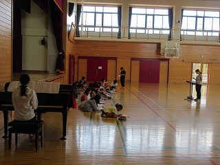 音楽室で課題曲を練習したり、体育館で発声の仕方を練習したりと、いつもの練習よりじっくりと取り組むことができました。少しずつ、でも確実に上手になっていることを感じることができています。今後の仕上がりがとても楽しみです。