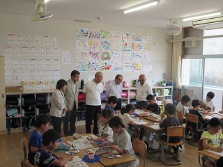 今日は、日ごろからお世話になっている評議員の皆様をお招きして、第1回目の学校評議員会を開催いたしました。学校経営の説明、授業参観を通して岩根小学校の様子をご覧いただいた後、お一人お一人から、学校に関する貴重なご意見をいただきました。その中で一番うれしかったのは、あいさつがよくなっているということです。これまでの取り組みの成果が表れているようです。これからも、「あいさつ」日本一を目指してがんばっていきたいと思います。一方で、改善した方がいいのは「道路の歩き方」でした。今後も安全に登下校できるよう、呼びかけていきたいと感じました。貴重なご意見、ありがとうございました。