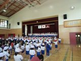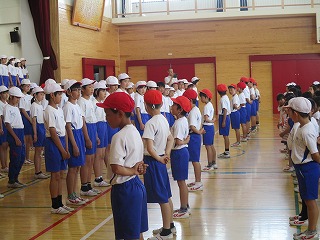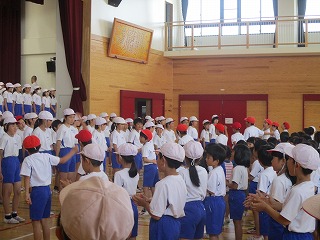 明日の南達陸上競技大会に向けて、壮行会が行われました。4年生の子どもたちが応援団となり、1、2、3年生と一緒に、元気にエールを送りました。