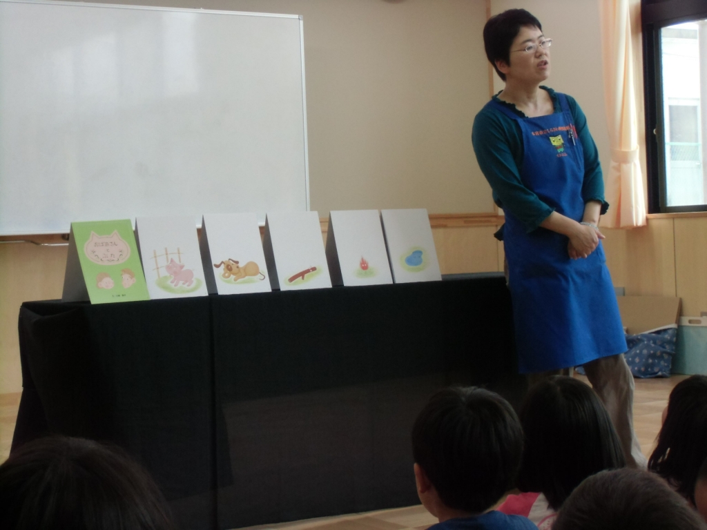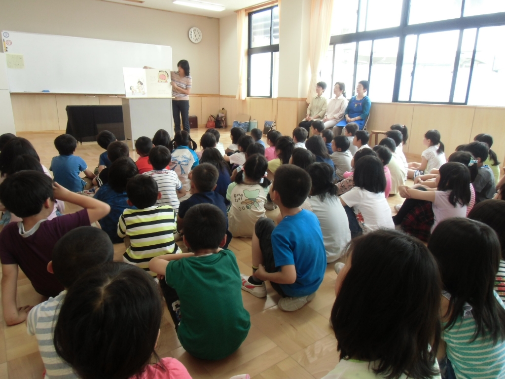 今日の4校時目に、しらさわ夢図書館の方がいらして、出張お話会が行われました。