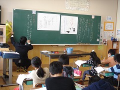 2校時目には、4年生が総合的な学習の時間の「自分の夢を紹介しよう」という題材で学習をしました。"What do you want to be?" という質問に ”I want to be ~” という言い方で答えていました。いろんなカードを使って、どの子も楽しそうに学んでいました!