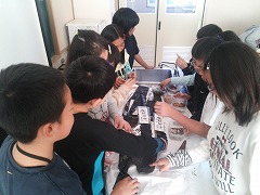 真剣に活動の様子を見て回っていました。また、3年生に優しく説明する上級生の姿もあり、