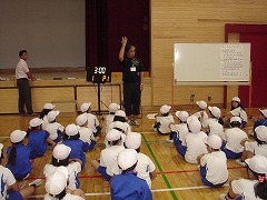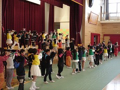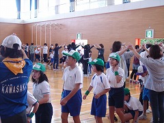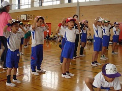 岩根小学校の紹介をしました          みんなで体操!リズムにのって!