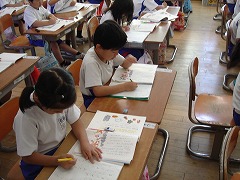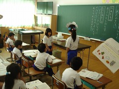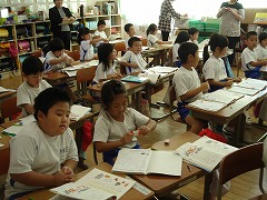 んき」の授業でした。先生と一緒に登場人物の様子や心情をを確実に読み深めていました。