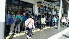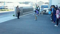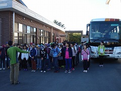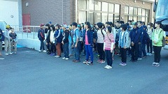 全員集合しました。みんな楽しくてにこにこ!      教頭先生に出発のあいさつ!