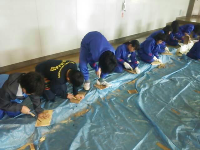 二日目の午前は焼き板作りでした。
