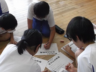 また,6年生は「読書へのアニマシオン」を しらさわ夢図書館の栁沼志津子様にお世話になりました。6年生はこれまでに数回アニマシオンに取り組んでいるのですが,今回は,物語をしっかりと読み取り登場人物を紹介していくと言う活動でした。グループで文章を読みながら意見を活発に交流させる姿が印象的でした。