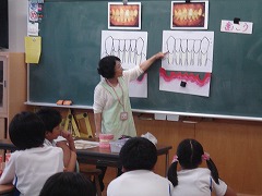 2015年7月16日 11時10分今日の2,3校時目の学級活動の時間に5,6年生の歯科教室を行いました。ご指導いた