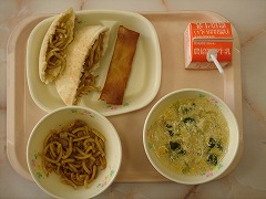 今日の給食の献立は、今年度初めて(?)パンがでました。そして中華風メニューでとても美味しいものでした。