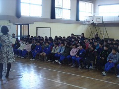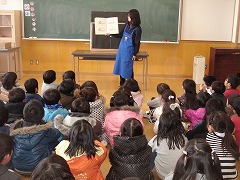 5校時目には、ゆめ図書館の図書館司書の先生が、2年生に絵本の読み聞かせをしてくださいました。クリスマスやお正月の時期にちなんだ本もありました。日頃活発な2年生も、絵本にすっかり引き込まれて、集中して聞いていました。