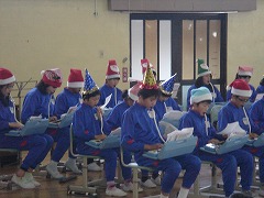 昼休みには、6年生がクリスマスコンサートを開きました。たくさんの児童、教職員、保護者が観客として参加。6年生楽団は、「赤鼻のトナカイ」をはじめ全7曲を演奏しました。息がぴったり合っていて、とても上手な演奏でした。(「さすがは6年生!」と思った下級生がたくさんいたはずです。)