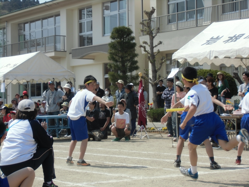 とてもよい天気のもと、岩根小学校大運動会が開催されました。