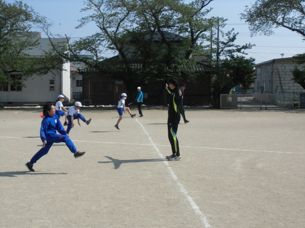 今回、南達陸上支援授業として、東京体育大学、東海大学の陸上選手が指導をして下さいました。