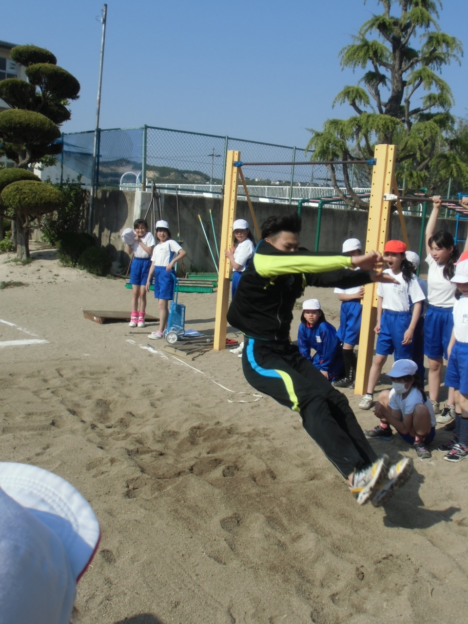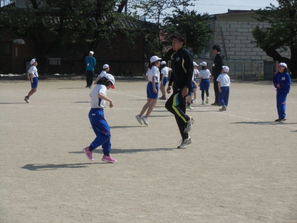 子ども達は、トップアスリートの指導を受けて、走るコツや遠く跳ぶコツなどを学ぶことができました。