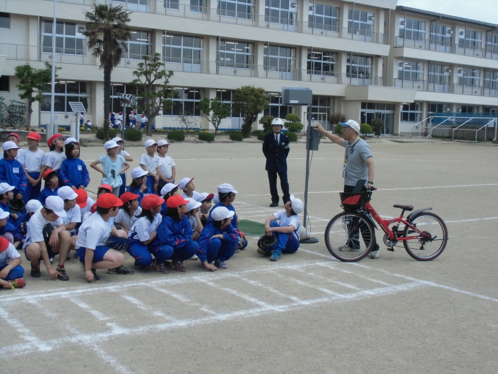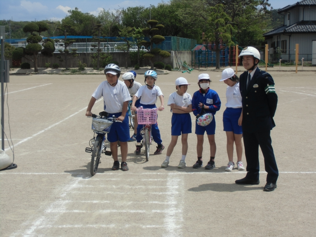 4年生から6年生は、校庭で自転車の運転のルールについて学習しました。
