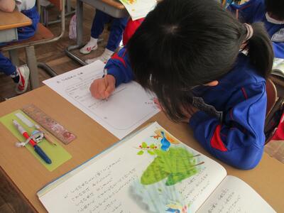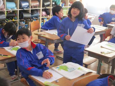 1月23日 2年生教室で道徳科の授業が行われていました。「ぐみの木と小鳥」という教材を通して「親切、思いやり」の道徳的価値を学びます。