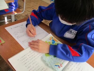 授業の後半では、今までの自分を振り返っていました。親切にした経験をエピソードととして思いだし、書けるようになっているところにも成長を感じます。これもまた積み重ね。