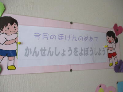 実はこれ、保健室前の掲示です。楽しみながら、子どもたちの健康意識を高めることを目的としています。