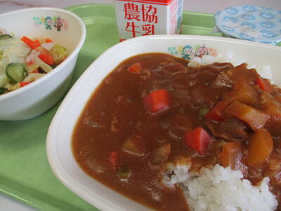 1月22日 今日の給食のメニューは「ポークカレーライス」「フレンチサラダ」「ヨーグルト」でした。そう、まさに王道の給食。