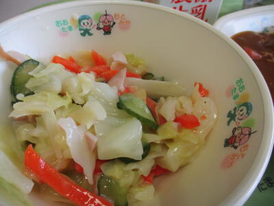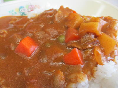 カレーの海に、色とりどりの野菜達が浸っています。煮崩れがないので、食べ応えもあります。辛味も、子ども向けでほどよいです。