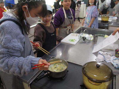 味見も大切な実習です。しっかり出汁は効いているかな。