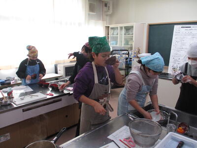 12月5日 5年生が家庭科で調理実習に取り組んでいました。身支度もしっかり整っていて、さすが高学年です。学習に向かう意識の高さを感じます。