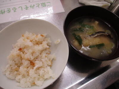 自分達でつくったごはんと味噌汁。お味はいかが?