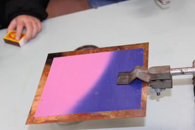 先生は、火にかけたフライパンを例にして、実生活における熱伝導をイメージさせていました。この一工夫が実生活と実験をつなぎます。